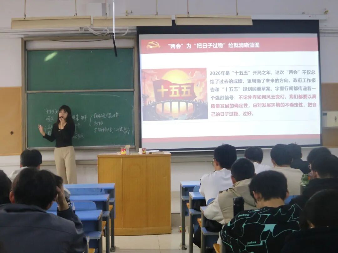 作为思政课的核心课程,《习近平新时代中国特色社会主义思想概论》课程立足新时代思想精髓,聚焦全国两会精神与“十五五”规划顶层设计,系统解读中国式现代化推进路径、高质量发展首要任务、民生福祉提升举措等核心部署。教师结合政府工作报告重点内容,深入阐释“十五五”时期国家发展的总体目标、战略布局与实践要求,引导学生深刻把握新时代国家发展的逻辑主线,明晰青年在国家大局中的定位与责任。