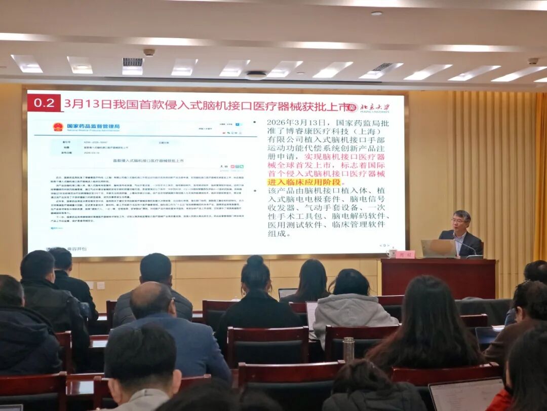 周教授以脑机接口入选2026年政府工作报告重点培育的未来产业为切入点,系统梳理了近年来我国脑机接口产业的政策支持体系与发展实践成果,强调脑机接口已成为各国科技竞争的战略制高点。他从脑机接口内涵与近期发展、脑机接口的安全性、有效性、规制问题等维度展开深度剖析,精准界定了脑机接口的科学内涵与分类标准,厘清了“什么是脑机接口”的认知边界,全面阐释了脑机接口技术面临的多重安全问题,剖析了脑机接口有效性验证的核心难题,并结合医疗器械监管相关法规,聚焦试验性治疗的属性界定、知情同意的现实局限、医患角色双重性等问题,探讨了脑机接口产业发展的规制路径。他认为,脑机接口医疗应用的成熟仍需时间,研发难度不亚于人工智能体,未来需兼顾创新发展与安全防控,推动产业高质量发展。