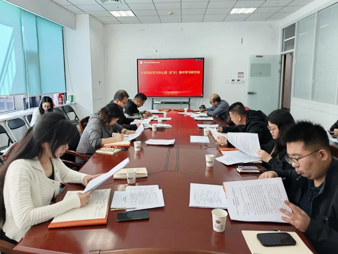 3月20日,马克思主义学院党委理论学习中心组(扩大)举行了集体学习研讨会,重点学习2026年政府工作报告和习近平总书记在党的二十届四中全会上的重要讲话精神。学院党委书记刘文勇主持会议,学院领导班子及各党支部书记参加学习。
